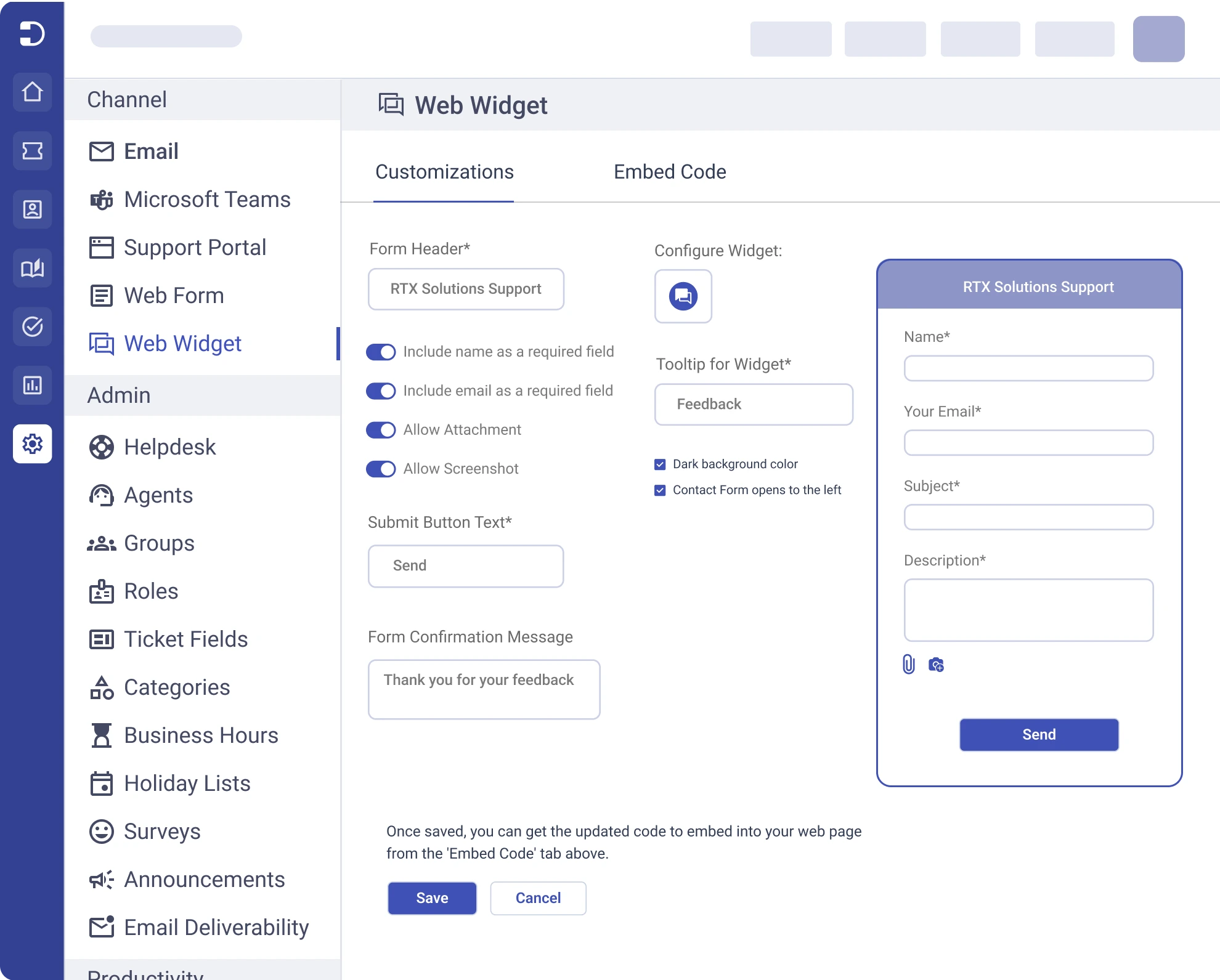 Customize your entire helpdesk from support portal, to custom roles/ fields/ forms and more so that your helpdesk looks and functions the way you want.