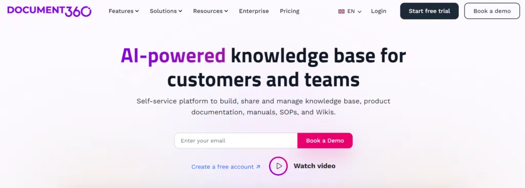 The platform’s advanced capabilities, such as its robust search functionality, rich analytics, and AI-powered content suggestions, make it an invaluable tool for content creators. With workflows for managing documentation processes, a business glossary for maintaining consistent terminology, and a feedback manager to track user feedback, Document360 significantly improves the efficiency and quality of documentation efforts.Â