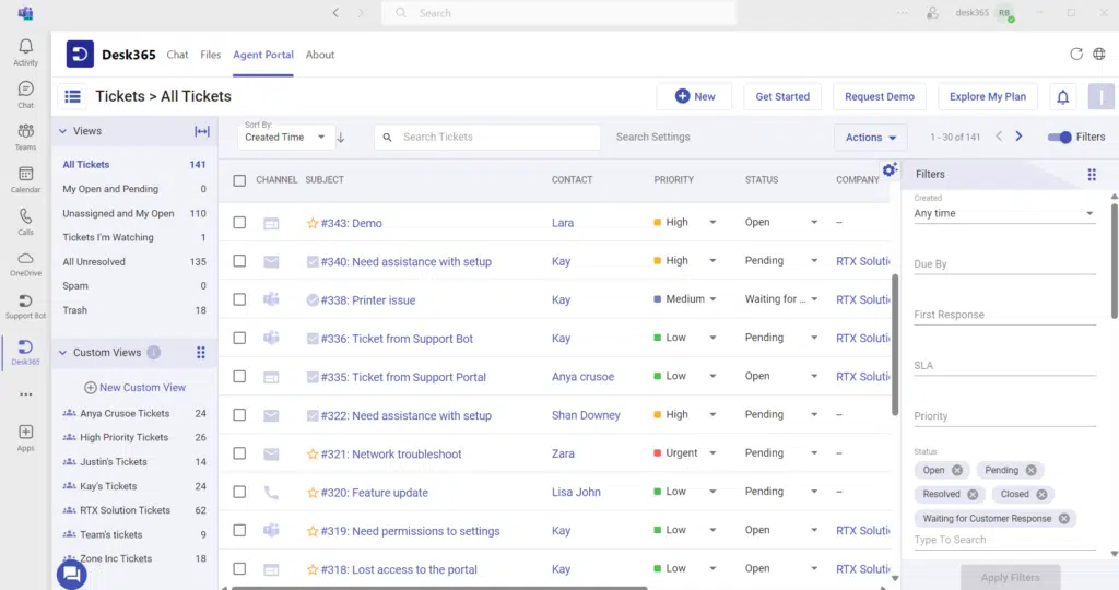 Among the various helpdesk ticketing systems that integrate with Microsoft Teams, Desk365 stands out for its simplicity and efficiency. Desk365 is a cloud-based helpdesk solution that excels in providing comprehensive support services. Its integration with Microsoft Teams, offers a powerful combination to enhance customer support and internal workflow management.