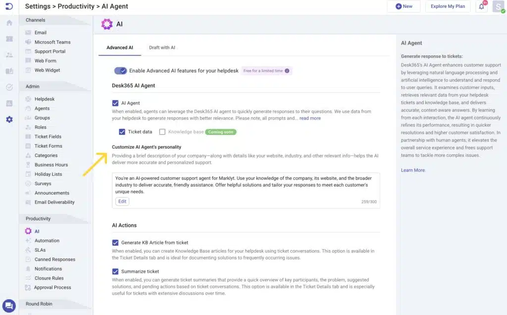 Learn more about the Desk365 AI Agent