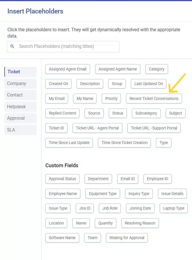 Explore the complete list of Desk365 placeholders.