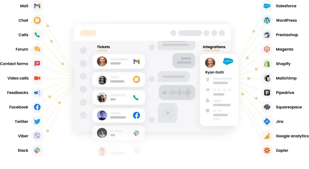• Multi-channel support: Manages emails, chats, and calls in one place.