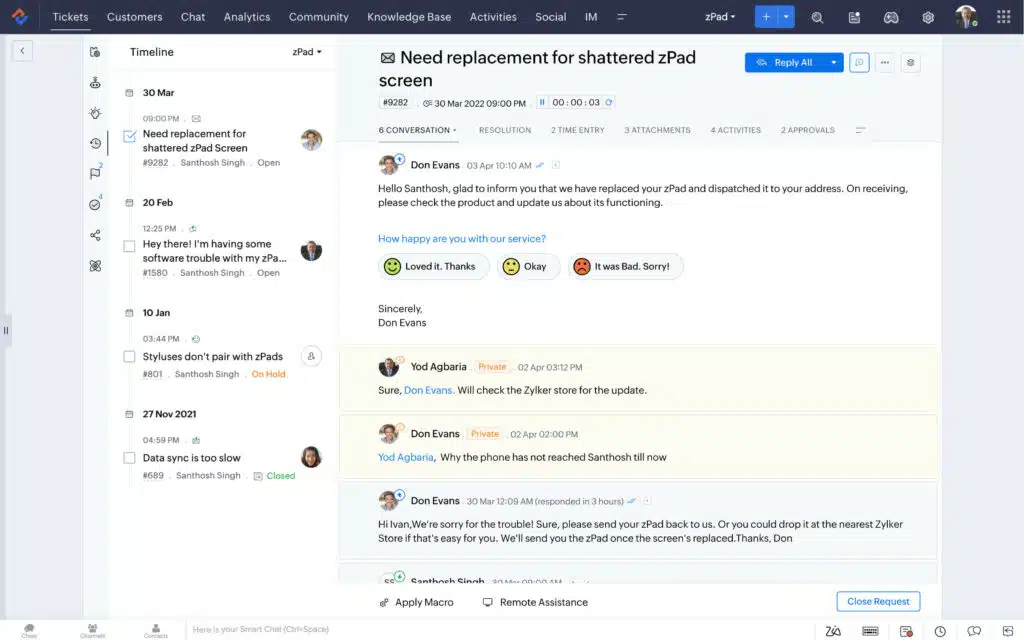 Advanced automation: Zoho Desk offers advanced automation capabilities for conversation sorting and tagging, allowing teams to automate repetitive tasks and streamline workflows. By automating routine processes, businesses can improve efficiency and focus on delivering personalized support to customers.Â